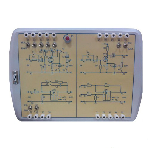 Лабораторные стенды "Промэлектроника" созданы для изучения характеристик и параметров основных типов аналоговых электронных устройств. Изучаются различные типы однокаскадных усилителей, включенных по схемам с общим эмиттером (ОЭ), с общим коллектором (ОК) или с общим истоком (ОИ).